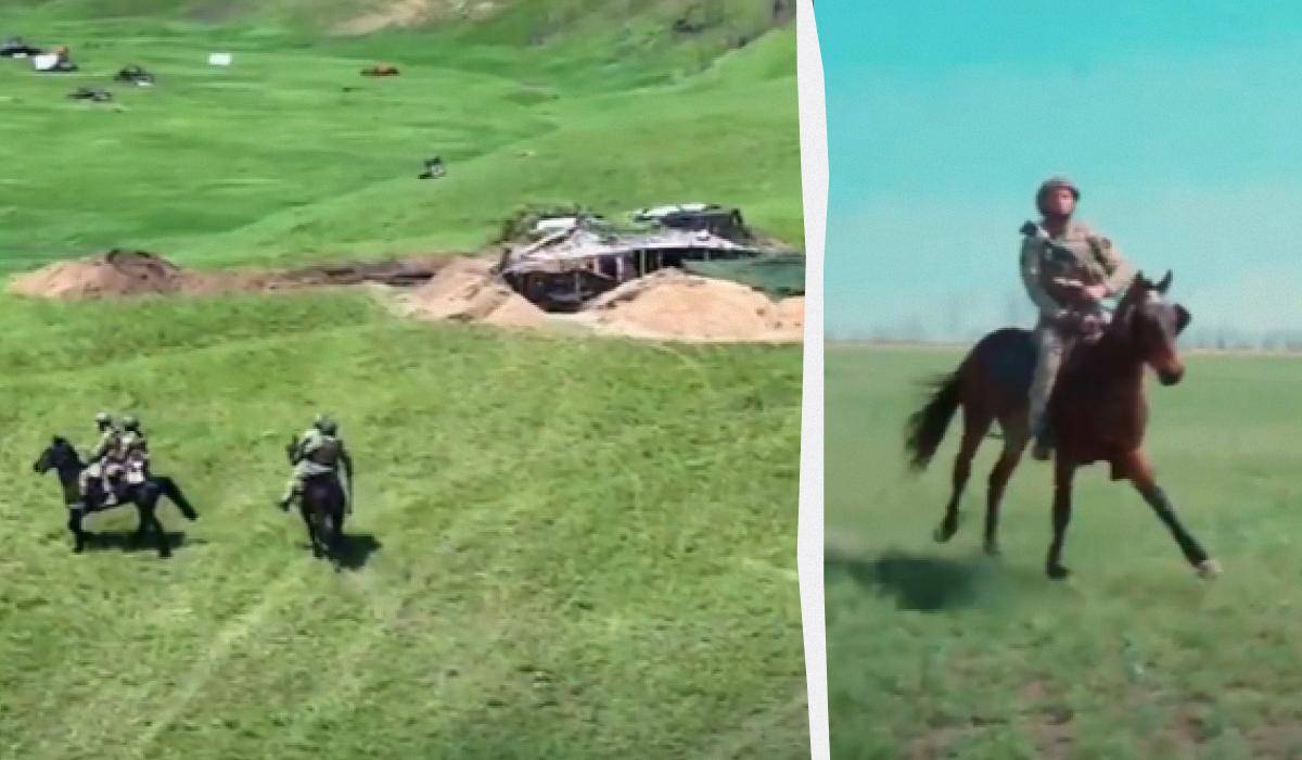 Российские военные начали осваивать перемещение по полю боя на лошадях / коллаж УНИАН, скриншоты