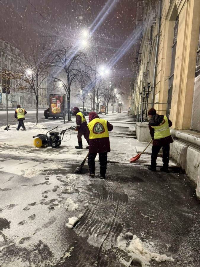 Крім цього, працівники КП «Харківблагоустрій» розчищають тротуари, пішохідні доріжки та виходи з під’їздів, а також посипають прибудинкові території піщано-сольовою сумішшю. До робіт залучено понад 1,5 тисячі комунальників та спецтехніка підприємства.