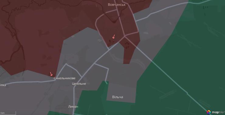 «Ворог просунувся у Вовчанську, Покровську та поблизу Вільчі«, — йдеться у свіжому звіті DeepState.