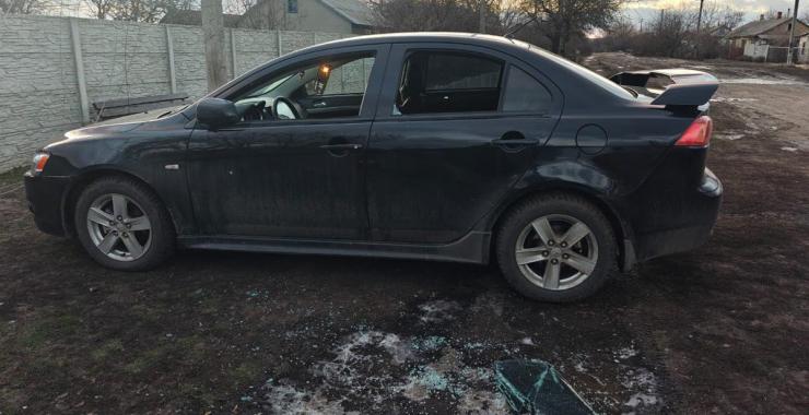 У селі Зарічне Старосалтівської громади російський БпЛА влучив в землю поряд з автомобілем Mitsubisi.