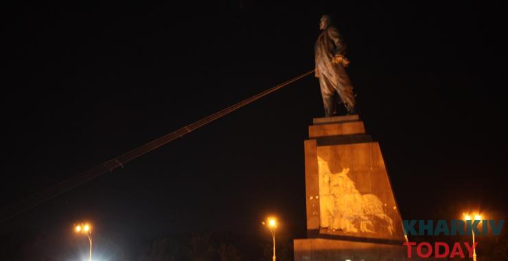 Не стало Леніна 28 вересня 2014 року. Увечері група молодих людей із прапорами «Правого сектору» та «Айдара» підпиляли монументу ноги болгаркою, зачепили тросом та повалили. Пам’ятник виявився порожнім та легким, тому з метро нічого не трапилося. Його уламки розтягли на сувеніри, тулуб вивезли у невідомому напрямку.