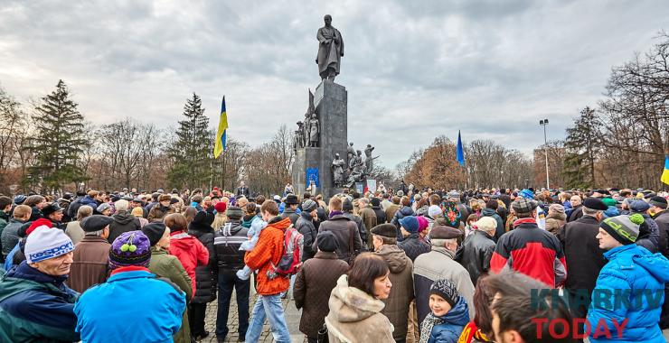 Мало хто вже пам’ятає про це, але перші збори харківського Євромайдану (тоді ще він так не називався) відбулися 19 листопада не біля пам’ятника Шевченку у саду, а на площі Свободи, навпроти облдержадміністрації. Тоді це був нечисленний мітинг на підтримку Асоціації з ЄС. Сюди ж обурені містяни прийшли за три дні, протестуючи проти жорстокого розгону київського Майдану. А вже наступного дня за наказом тодішнього мера Геннадія Кернеса площу «посадили за ґрати» — обгородили сіткою під приводом того, що настав час готуватися до Нового року.