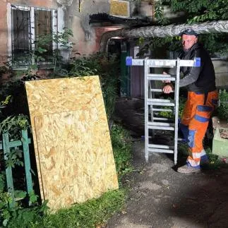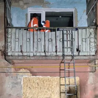 Наразі триває ліквідація наслідків удару. Працівники КП «Харківспецбуд» закривають пошкоджені вікна.
