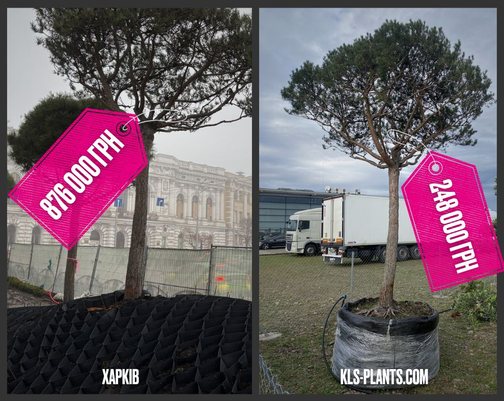 Але на сайті компанії «Кузнецов ландшафтна студія» найдорожча звичайна сосна «Пінія» коштує 247 800 грн. Причому ці сосни  дуже схожі на висаджені біля «Градусника» дерева.