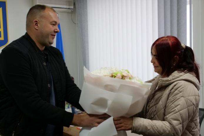 Вручення нагороди багатодітній матері Ганні Бардадимовій / Фото: Балаклійська МВА