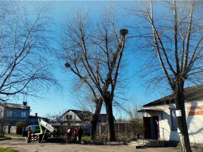 За словами директора підприємства, до КП «Благоустрій міста Ізюм» звернувся місцевий житель Леонід Щибря. Чоловік розповів, що через розросле гілля на тополі лелекам стало важко підлітати до гнізда, особливо у вітряну погоду. Працівники підприємства оперативно відреагували — надали автовишку та обрізали зайві гілки на висоті близько 16 метрів.