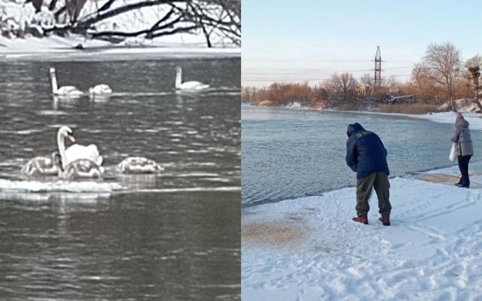 Екстремальні морози скували більшість водойм Харківщини, але на Сіверському Дінці в межах Змієва залишилася відкрита ділянка води. Саме тут зібралися десятки лебедів і качок. Побачивши це, місцевий житель Юрій Нестерцов організував допомогу для птиці та залучив до цього небайдужих людей.