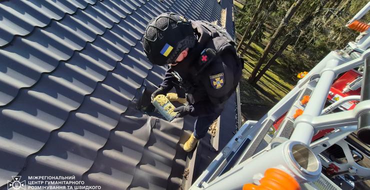 Після нічної атаки 6 квітня господарі приватного будинку виявили на даху будівлі підозрілий предмет та зателефонували до Служби порятунку. На місце приїхав підрозділ розвідки та розмінування.