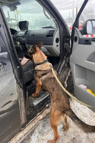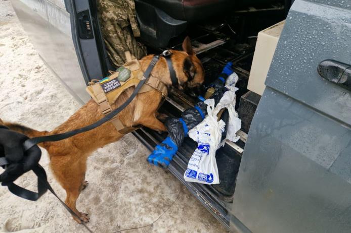 - У BMW 525 службовий пес Отті знайшов понад 9 кг тротилу, 7 гранат та детонатори.