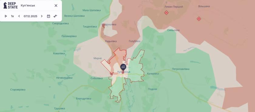 Ситуація в Куп’янську на початку грудня. Карта DeepState