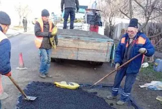 В Ізюмі тривають роботи з ямкового ремонту доріг, для якого активно використовують холодний асфальт — сучасну бітумно-мінеральну суміш, яку можна укладати без попереднього нагрівання навіть за низьких температур.
