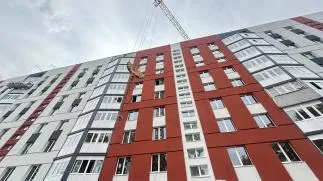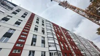 На вулиці Бучми в Харкові тривають роботи з відновлення житлової багатоповерхівки, яка постраждала внаслідок ворожих обстрілів у 2022 році.