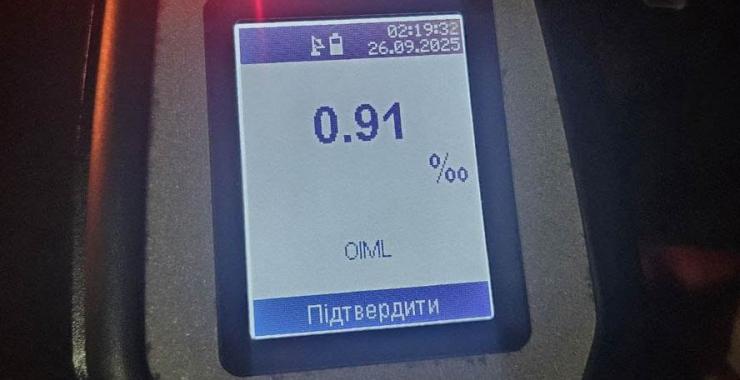 Водій перевищив норму алкоголю у опнад 4 рази.