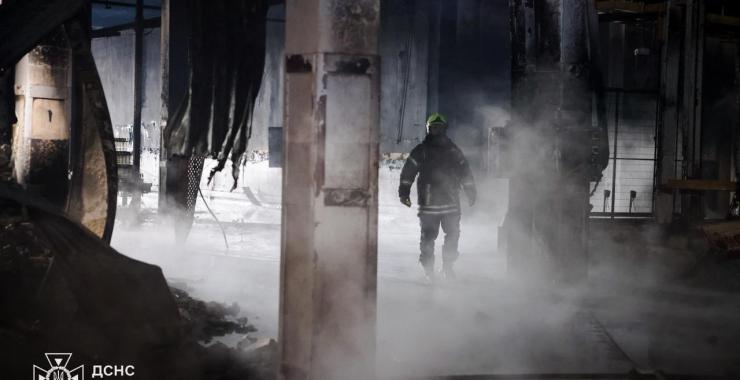На місці обстрілу уночі виникла масштабна пожежа на площі приблизно 3000 квадратних метри.