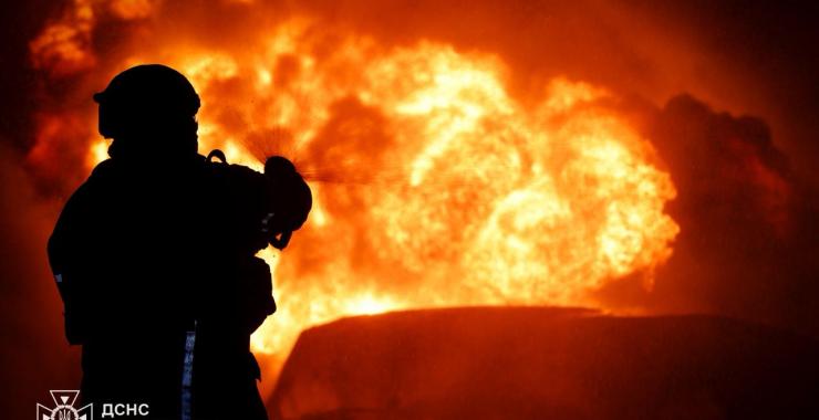 Безпілотники влучили у резервуари, що зберігалися на території приватного підприємства — здійнялась масштабна пожежа. На місці працюють рятувальники, пожежу ще не загасили.