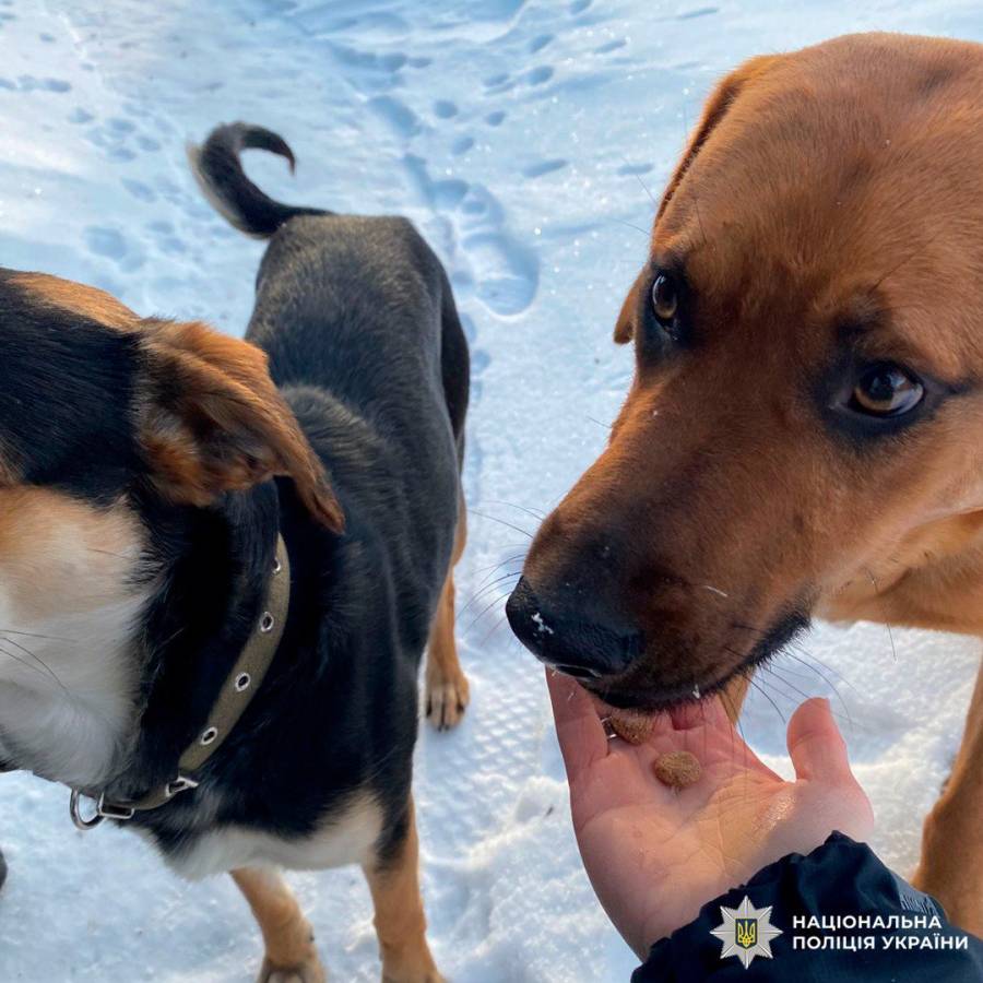 У Вовчанській громаді поліція та волонтери допомогли тваринам / Фото: Нацполіція