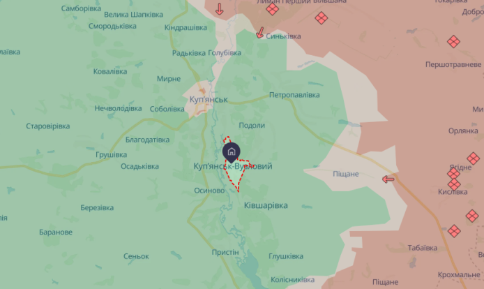 Крім цього, за даними аналітиків DeepState, Куп’янськ-Вузловий перебуває під повним контролем Сил оборони України. За наявною інформацією, окремі ворожі групи періодично намагаються інфільтруватися у селище з боку Піщаного вздовж залізничної колії. Усі такі спроби своєчасно виявляють, а противника знищують, щоб не допустити накопичення сил.