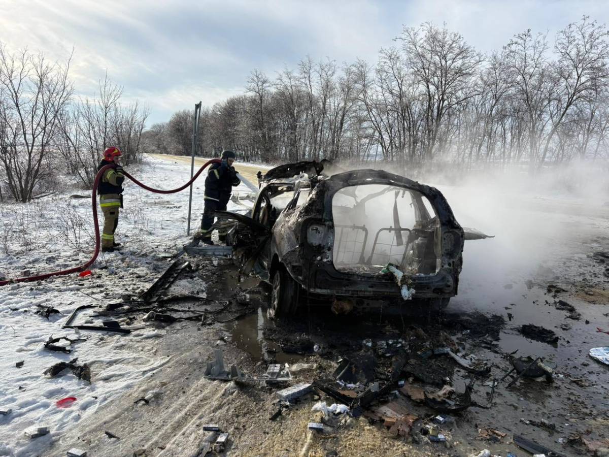 Унаслідок влучання безпілотника транспортний засіб загорівся. Площа пожежі склала близько 5 квадратних метрів. До ліквідації наслідків були залучені підрозділи ДСНС.