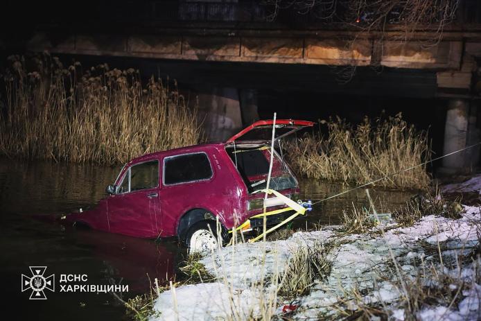 У Новобаварському районі Харкова у ніч на 27 лютого автомобіль ВАЗ 2121 «Нива» з’їхав у річку Лопань. Машину з води вилучали рятувальники ДСНС.
