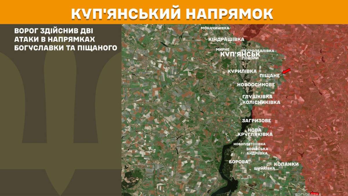 Крім того, на Куп’янському напрямку зафіксовано дві атаки — у напрямках Богуславки та Піщаного.