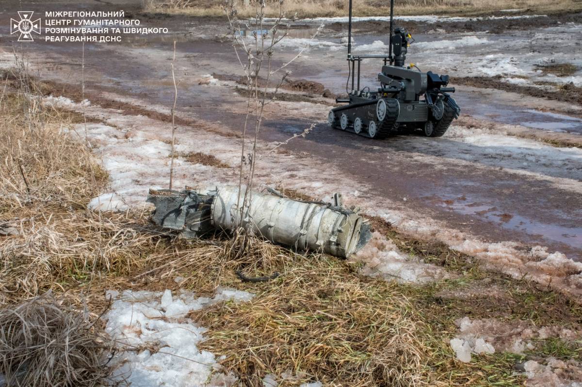 Для обстеження території фахівці використали наземний роботизований комплекс. Усі роботи проводили у спеціальному захисному костюмі типу EOD-9.