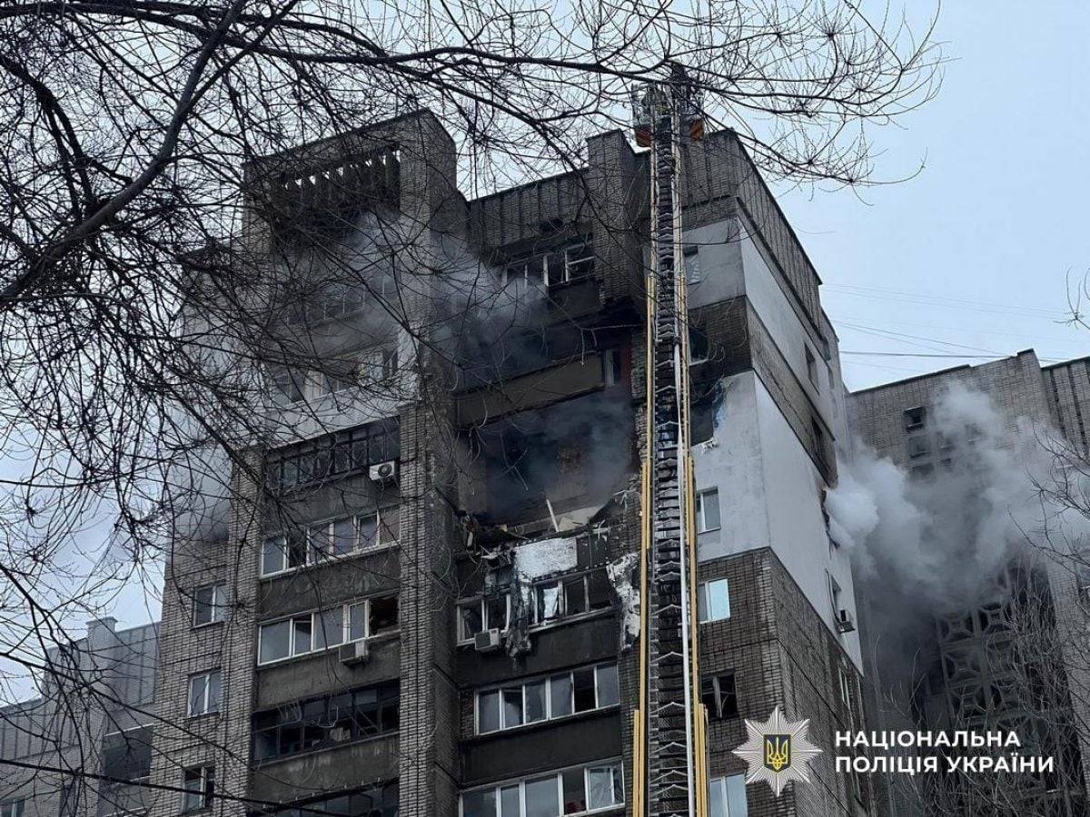 В Управлении ГСЧС Украины в Днепропетровской области отметили, что в результате удара частично разрушена жилая 16-этажка.