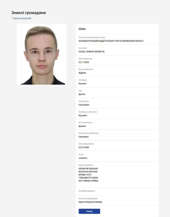 Данила Кузьміна оголосили у розшук 26 листопада. Фото: скрин.