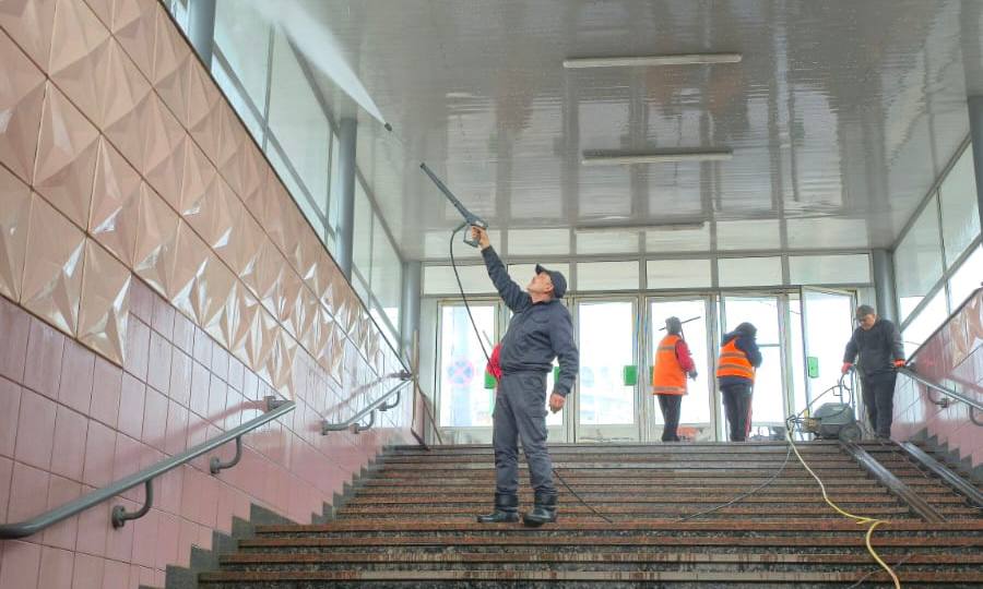 Генеральне прибирання переходів метрополітену в Харкові/Фото: Харківська міська рада