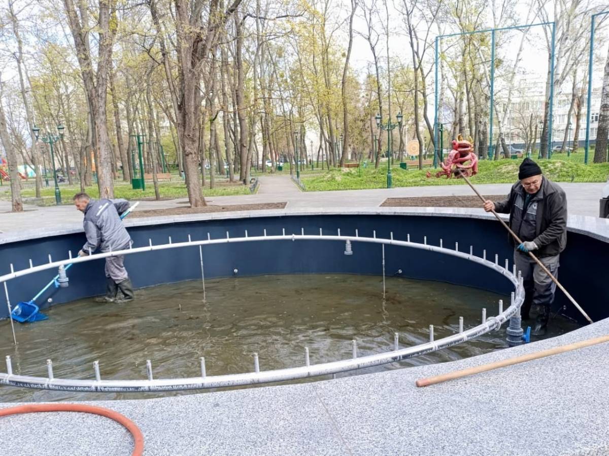 Комунальні служби також продовжують сезонну підготовку міських фонтанів. Цього тижня активні роботи тривали у Фентезі-парк, де готують до запуску один із водограїв.