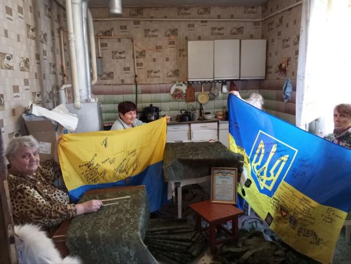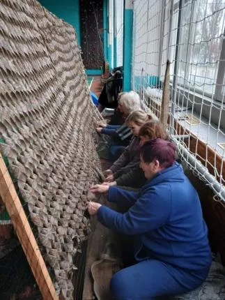 Волонтерки з Барвінківщини регулярно плетуть маскувальні сітки та готують передачі для військових/Фото: Альона Ільїна