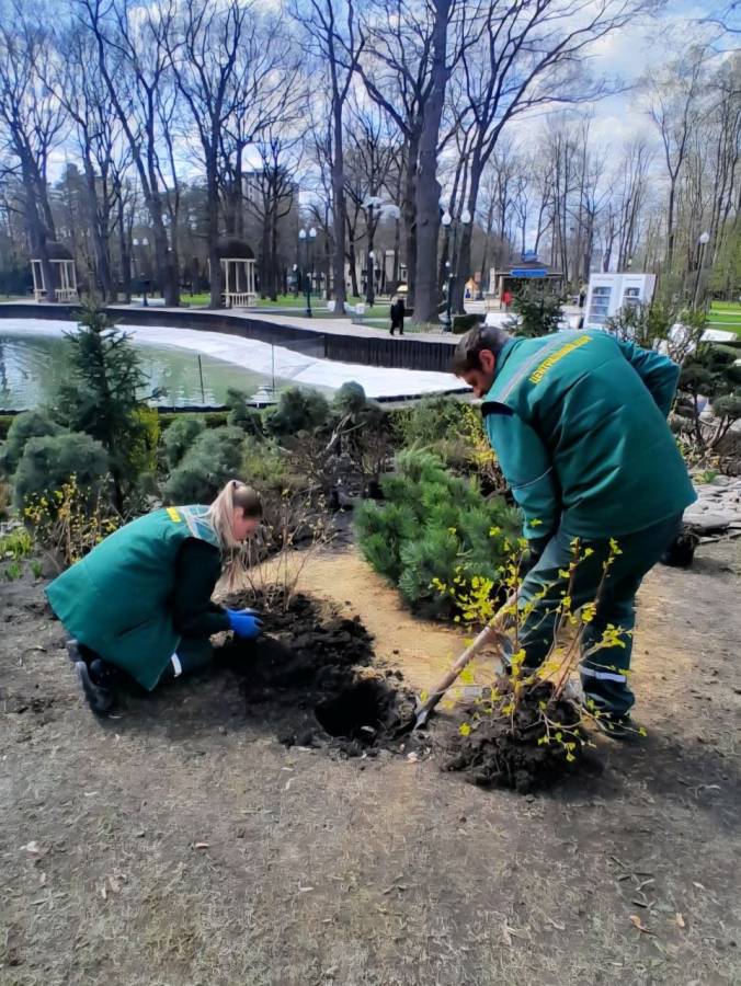 Весняні роботи з благоустрою у Центральному парку/Фото: Харківська міська рада