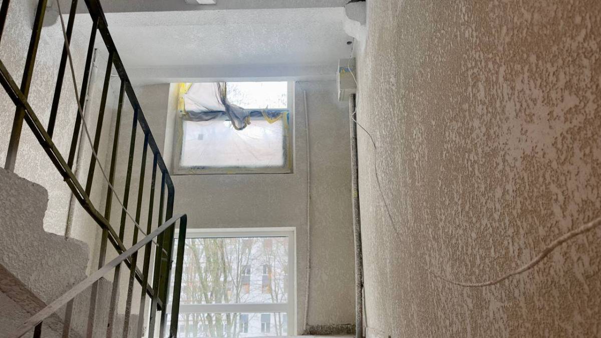 У будинку відновили сходові марші з другого по п’ятий поверхи, плити перекриття та зовнішні стіни. У місцях загального користування повністю замінили вікна. У квартирах роботи перебувають на завершальному етапі.