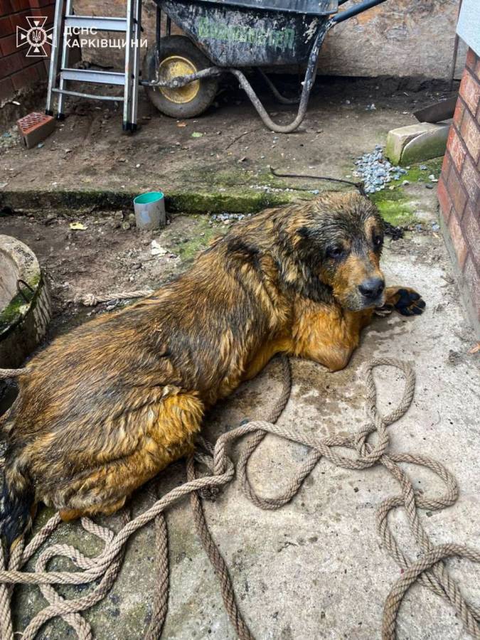 Песик упав у каналізаційний колодязь із нечистотами на території приватного домоволодіння і не міг вибратися. На місце одразу прибули рятувальники, які за допомогою пожежної драбини та мотузок дістали наляканого чотирилапого з пастки.