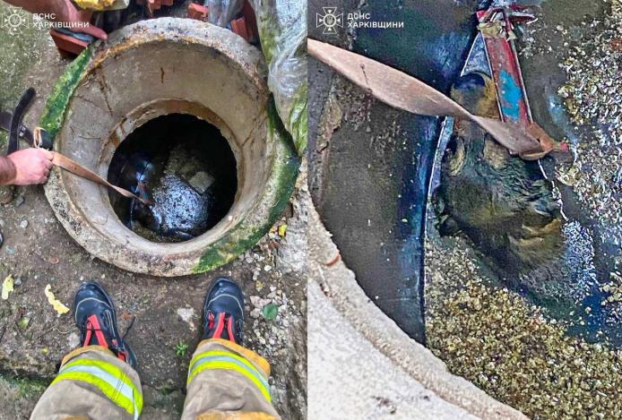 Харківські рятувальники допомогли собаці, який упав у каналізаційний колодязь.