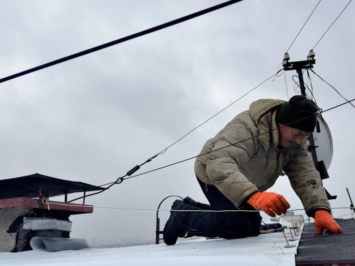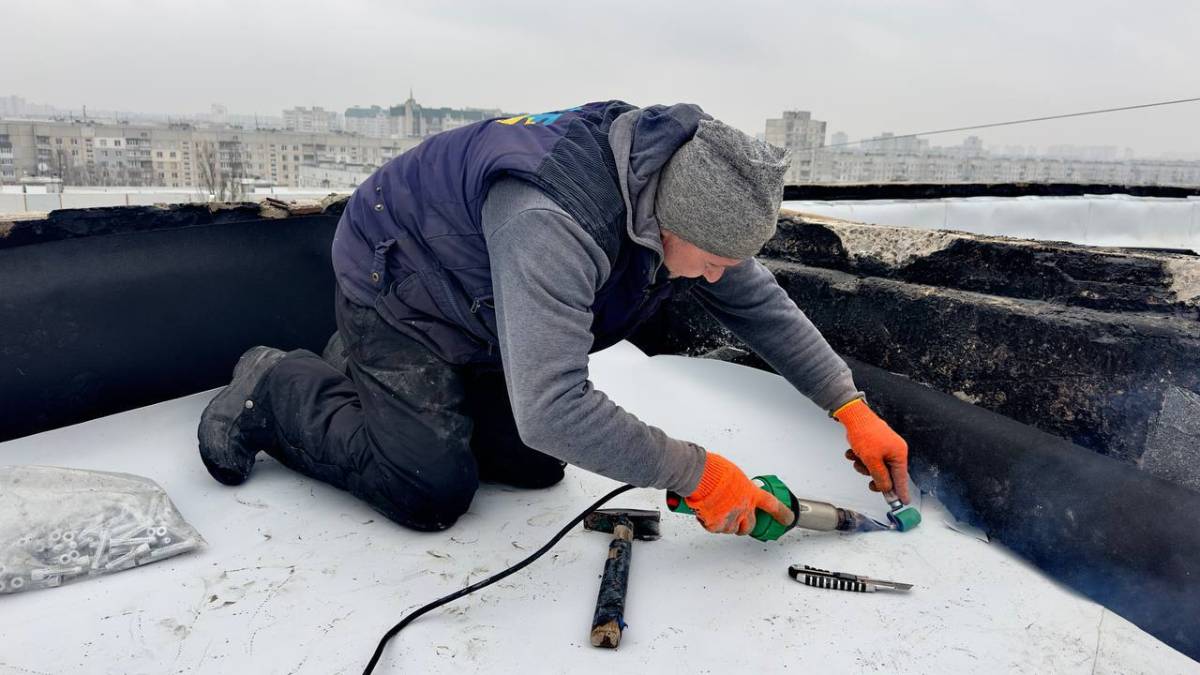 У Харкові продовжується капітальний ремонт покрівлі багатоквартирного будинку, пошкодженого внаслідок обстрілів.