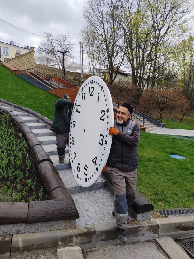 У Саржиному яру фахівці комунального підприємства демонтували циферблат годинника для очищення від бруду та іржі.