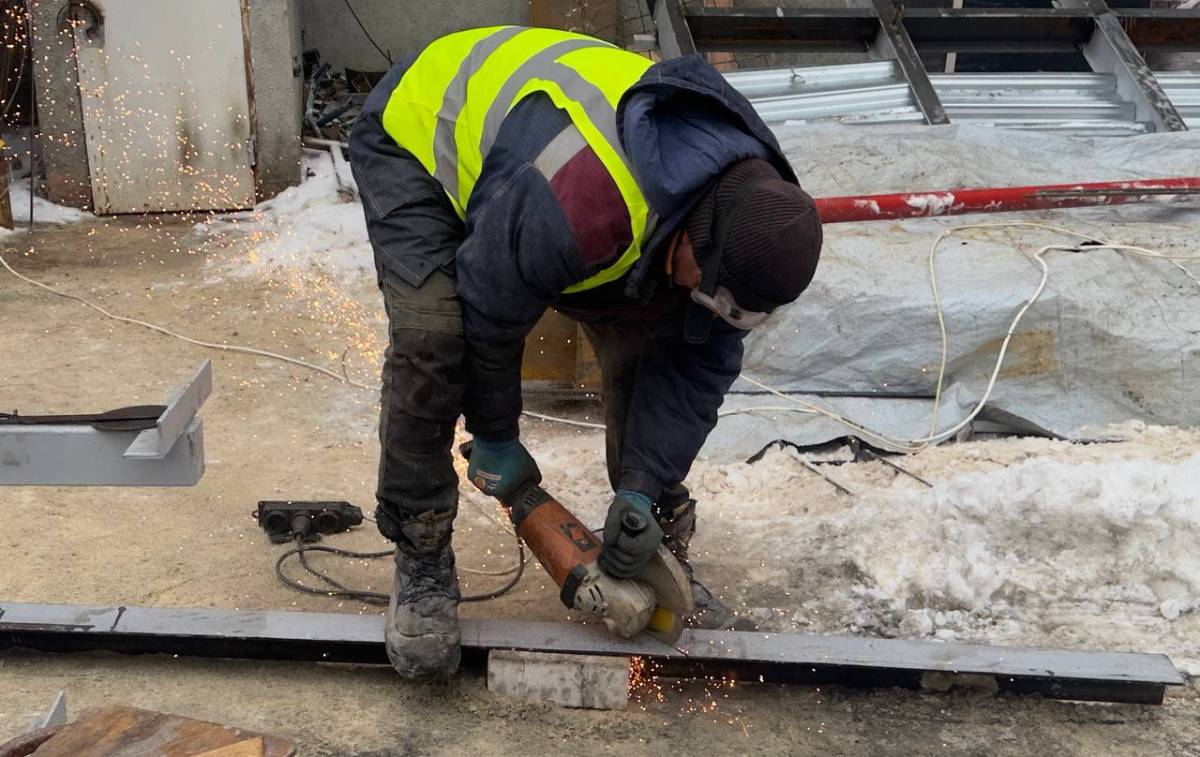 Паралельно всередині та ззовні тривають укріплювальні роботи: робітники посилюють дверні та віконні отвори спеціальними металоконструкціями, а також відновлюють сходові марші у під’їздах.