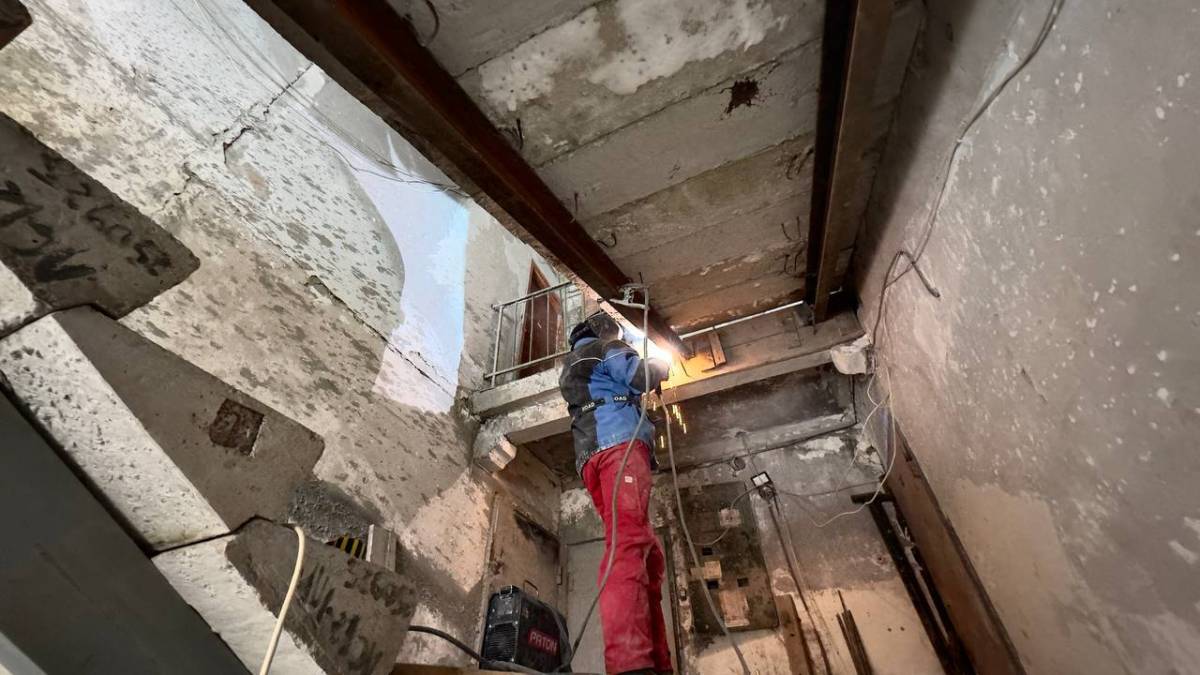 Крім того, в будинку відновили покриття покрівлі площею понад 1,2 тисячі квадратних метрів, відбудували плити перекриття та зовнішні стіни.