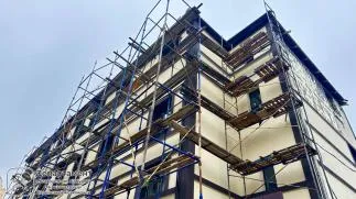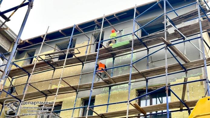 У Київському районі Харкова триває відновлення житлового фонду, пошкодженого внаслідок російських обстрілів. Зокрема, у багатоквартирному будинку на вулиці Кричевського фахівці утеплюють фасад і підвальне приміщення.