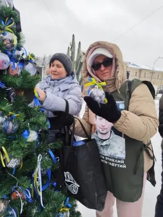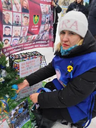 Поряд стоять інші жінки, чиї серця завмерли в очікуванні: Марина Симиненко шукає чоловіка Юрія (117-та бригада), Вікторія Степанова чекає одночасно і сина, і чоловіка.Кожне ім’я — це життя. Кожна кулька на ялинці — це молитва про повернення додому.