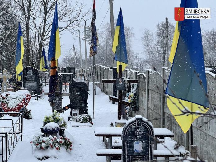 У Змієві відновили державні прапори на могилах полеглих українських воїнів, які були пошкоджені негодою.