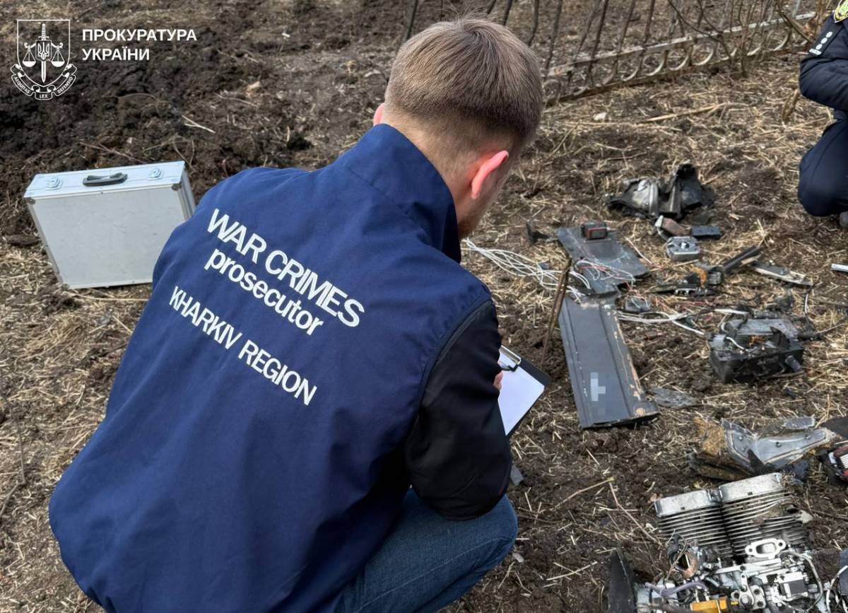 Правоохоронці фіксують наслідки удару російського БпЛА / Фото: Харківська обласна прокуратура