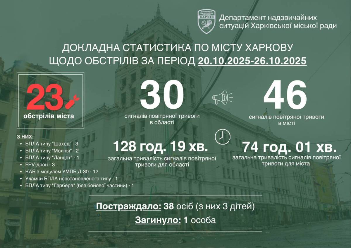 Минулого тижня Ситуаційний центр Харкова зафіксував 23 ворожі удари по місту, повідомив міський голова Ігор Терехов, передає «Слобідський край».