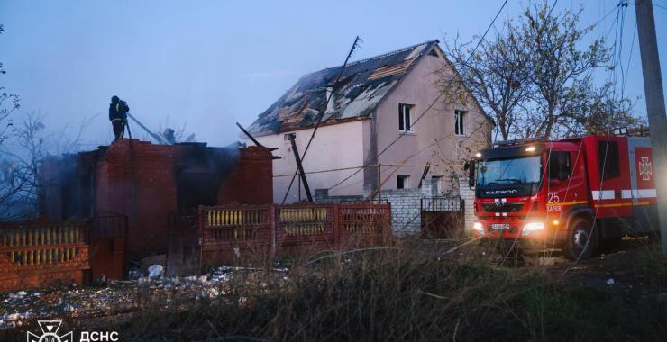 «В селищі Докучаєвське зафіксовано 3 осередки займань: горіли 2 приватних будинки, газова труба та об’єкт цивільної інфраструктури. Один з російських дронів влучив в будівлю Роганської місцевої пожежної команди, завдавши значних пошкоджень пожежному депо та техніці. У селі Руська Лозова горів приватний будинок. За попередніми даними, внаслідок ворожих ударів постраждали 6 цивільних осіб, в тому числі 2 вогнеборці МПО», — повідомили у ДСНС.